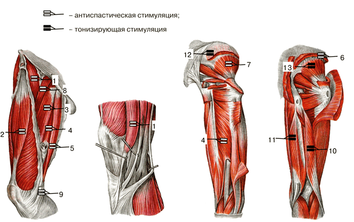 При сохраненной иннервации применение электростимуляции предупреждает развитие их атрофии вследствие гиподинамии (при болевом синдроме), повышает работоспособность и быстро увеличивает силу мышц.