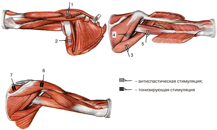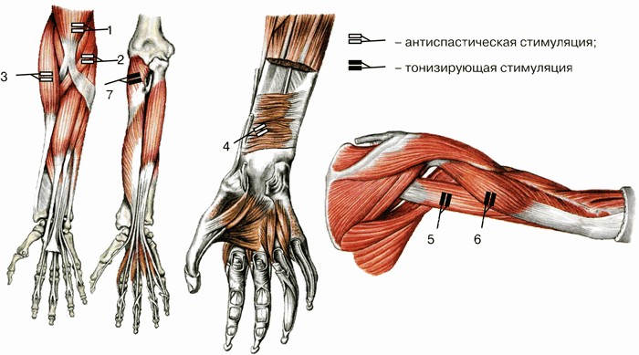 При центральном параличе, вызванном чаще всего нарушением мозгового кровообращения, электростимуляция создает центростремительную афферентацию, способствующую растормаживанию блокированных центров головного мозга, вокруг ишемизированного участка мозга, улучшает питание и трофику парализованных участков. Предупреждает развитие контрактур.